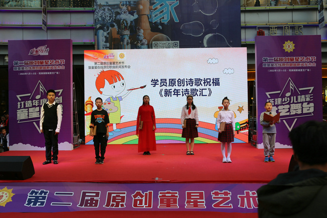2022年元旦三天,第二屆原創(chuàng)童星藝術(shù)節(jié)暨童星在線原創(chuàng)新歌發(fā)布會在深圳觀瀾湖新城MH MALL星空廣場隆重舉行,嘉賓云集,共同見證了五位小童星的五場新歌發(fā)布會,吸引了數(shù)萬名觀眾的駐足觀看,現(xiàn)場成為了孩子們歡樂的海洋。童星在線原創(chuàng)小童星們用自己創(chuàng)作的詩詞、歌曲等節(jié)目,在原創(chuàng)藝術(shù)節(jié)舞臺上盡情表演、盡情歌唱、盡情舞蹈、釋放自己的快樂和激情,歡度屬于自己的藝術(shù)盛會。