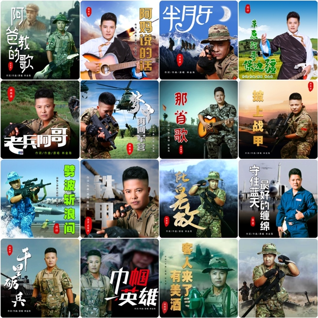 1997年12月,他帶著音樂夢(mèng)走進(jìn)綠色軍營,于2014年退役回到地方工作,先后在部隊(duì)摸爬滾打了17年,雖然回到地方,但他從未放棄當(dāng)兵初衷和音樂夢(mèng)想,創(chuàng)作熱情依然高漲,先后創(chuàng)作了300多首反映當(dāng)代革命軍人獻(xiàn)身使命、保家衛(wèi)國的軍旅歌曲,有《喀喇昆侖之最》《夢(mèng)中再回軍營》《劈波斬浪間》《巾幗英雄》《守住藍(lán)天最好的纏綿》《金戈鐵馬》《阿爸教的歌》《阿媽說的話》等一批膾炙人口軍旅歌曲,每一首歌曲都是一個(gè)感人的故事。2021年1月,由他精心打造的史上首張軍旅閩南語原創(chuàng)音樂專輯《強(qiáng)軍夢(mèng)·所向無敵》《軍旅情·老兵阿哥》雙專輯全網(wǎng)發(fā)行。一曲曲扣人心弦、可歌可泣的戰(zhàn)地軍歌的出爐得益于他一直生活在部隊(duì)一線,得益于他身上那股軍人獨(dú)有的堅(jiān)韌與剛毅。在作詞方面,林金海用朗朗上口且通俗易懂的方式唱出了軍旅生活中鐵血男兒的英雄本色。言簡(jiǎn)意賅而又簡(jiǎn)潔明快的詞作,頗為符合歌曲中所演唱的綠營生活,唱出了軍旅生涯的快樂與苦澀,也唱出了軍旅生涯的豪情與壯志。